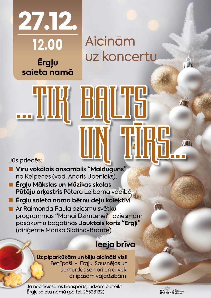 27.decembrī KONCERTS "...TIK BALTS UN TĪRS..." ĒRGĻOS