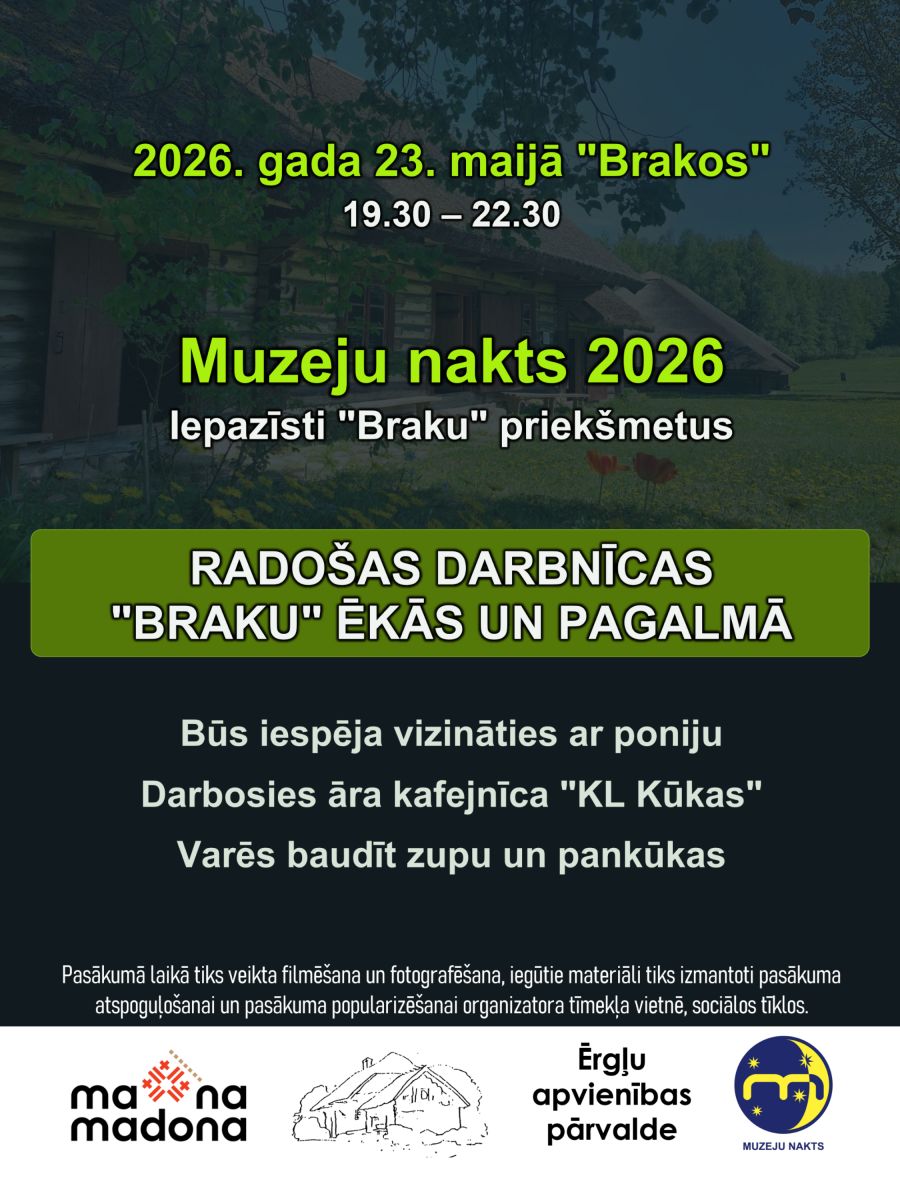 23.maijā MUZEJU NAKTS 2026 R.BLAUMAŅA MEMORIĀLAJĀ MUZEJĀ "BRAKI"
